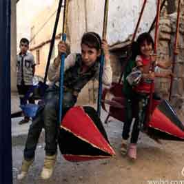 >心酸!敘利亞難民用火箭殘骸做秋千
