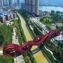▲近日,躋身CNN“世界最性感建筑”排行榜的長沙梅溪湖中國結步行橋全面建成(圖),即將對市民開放。這座步行景觀橋由直線形“散步道”和拱形“登山道”交叉組成。網友:走著走著就丟了……(中國日報)