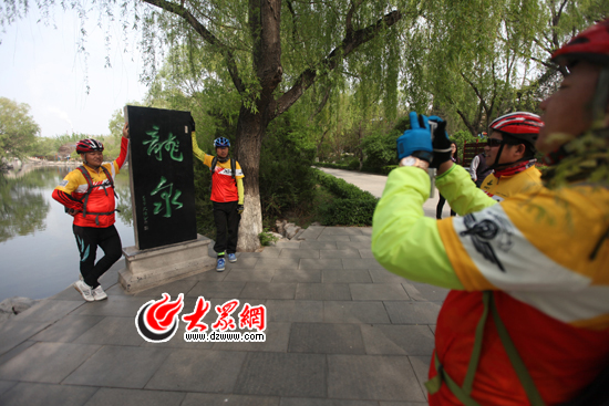 愛好攝影的騎友在百脈泉公園留念。