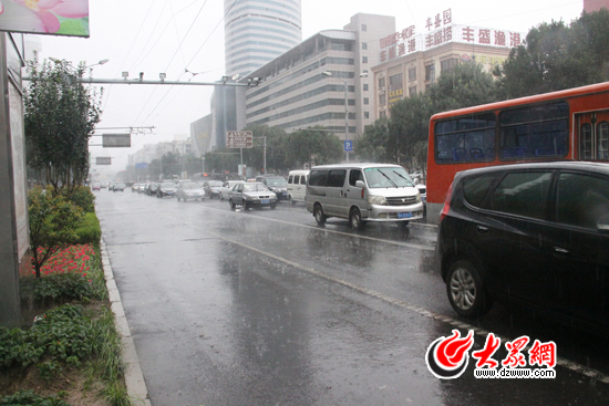 上午11時左右,濟南市區開始降雨,雨勢較大 (大眾網記者 赫洋) 攝