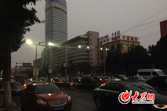 下午6點(diǎn),濟(jì)南突降大雨,天色瞬間暗了下來。見習(xí)記者 劉明明 攝