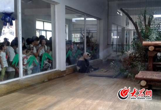 大熊貓憨態可掬的樣子引來眾多游人圍觀。