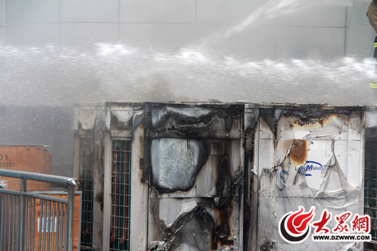 記者走近看到,起火的是擺放在醫(yī)院綜合樓西側(cè)的全新空調(diào)機(jī),此時(shí)空調(diào)機(jī)的包裝箱已被完全燒毀,原本白色的外殼被燒成黑色。在噴水槍的噴射下,不斷有黑水從機(jī)身底部流出。而與著火點(diǎn)相隔僅五米遠(yuǎn)的,便是正在施工中的新住院部,由于突發(fā)大火,目前工地已暫停施工。