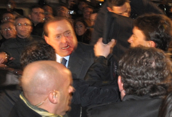 意大利總理貝盧斯科尼集會遭襲滿嘴流血