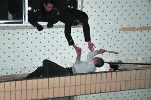 實拍公安局長只身制服持刀殺人疑犯