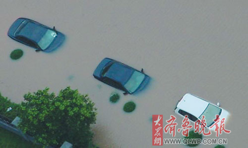 山大路上,多輛汽車險遭滅頂。 本報記者 孫曉曼 攝