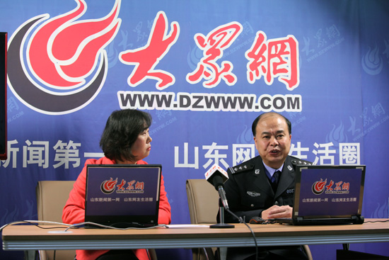 11月4日上午9時,首期嘉賓濟南市公安局歷下分局甸柳新村派出所所長魯建興來到大眾網(wǎng),與網(wǎng)友互動。 (大眾網(wǎng)記者 曹亮 攝)
