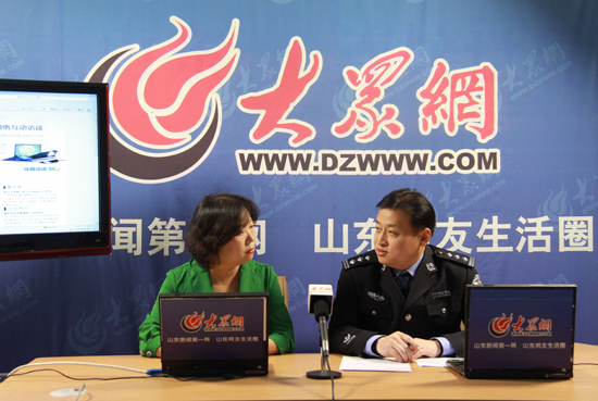11月9日上午9時(shí),第二期嘉賓濟(jì)南市公安局天橋分局黃臺派出所所長曹鴻華來到大眾網(wǎng),與網(wǎng)友互動。 (大眾網(wǎng)記者 盛堃 攝)