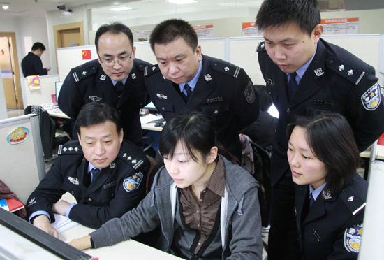 黃臺派出所所長曹鴻華與副所長王朝陽、袁建鑫,民警甄禮、張雅婷共同在線為網友解答問題。(大眾網記者 盛堃 攝)