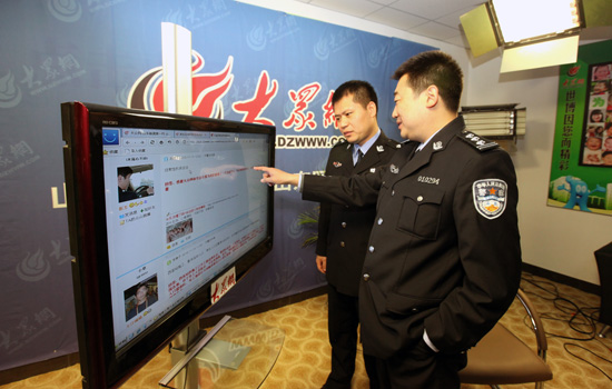16日上午,濟南市公安局槐蔭分局大金莊派出所所長陳劍和槐蔭公安分局宣傳科科長袁瑋瀏覽網(wǎng)友提問。