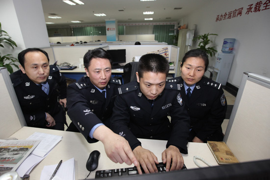 濟(jì)南市公安局天橋分局工人新村北村派出所所長李忠國與民警一起回答網(wǎng)友提問。(曹亮 攝)
