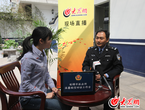 大眾網(wǎng)濟南5月3日訊(記者 王磊)今天上午,濟南市公安局天橋區(qū)分局制錦市派出所所長李士剛做客本網(wǎng)與濟南市公安局、生活日報聯(lián)合推出的“所長在線”欄目。他說,為了提高派出所民警的“精、氣、神”,制錦市派出所提出了“四零四化”的理念。同時,創(chuàng)新社區(qū)警務,通過搭建警務短信平臺,實現(xiàn)了服務群眾零距離和零懈怠。
