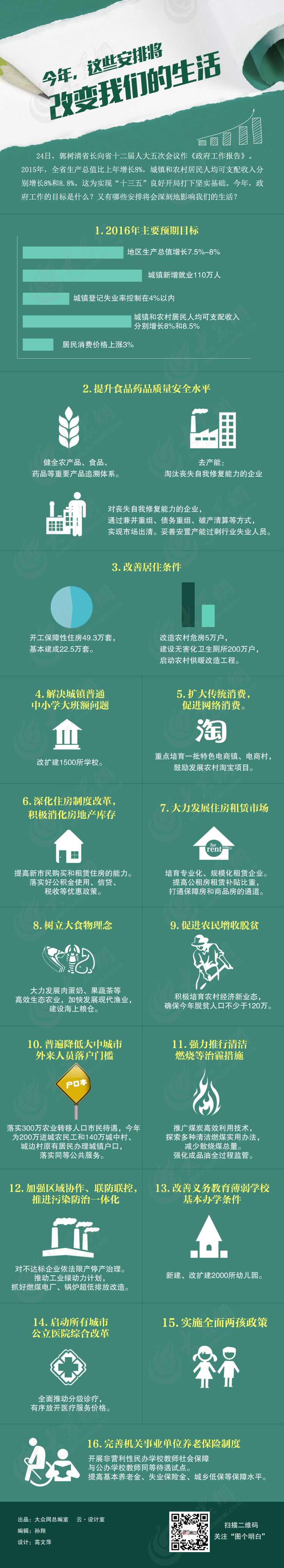 解決城鎮普通中小學大班額問題,今年要完成一半任務,改擴建1500所學校。進一步優化消費環境,擴大傳統消費,促進信息、網絡消費。