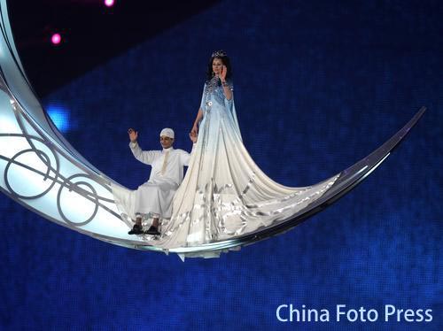 | 黃瀟瀟身披國旗慶祝勝利 |