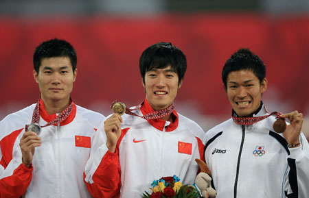 劉翔13秒15奪金破紀錄