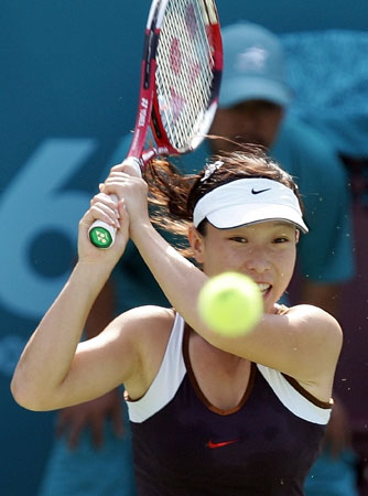 當(dāng)?shù)貢r(shí)間2006年12月13日,第十五屆亞運(yùn)會(huì)女子網(wǎng)球單打決賽在哈利法國際網(wǎng)球館進(jìn)行。在剛剛結(jié)束的比賽中,中國選手鄭潔以2比1力克印度選手米爾扎,為中國網(wǎng)球隊(duì)摘得首枚多哈亞運(yùn)會(huì)金牌,中國選手李娜和日本選手中村蘭子并列第三名。 |