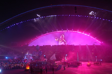 12月16日,燃燒了半個月之久的亞運圣火終于將要熄滅。哈里發體育場上演了一場精彩無以倫比的閉幕式,古老的一千零一夜故事在這里復活。 |