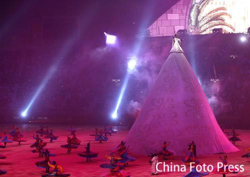 2006多哈亞運會閉幕式將于當地時間12月15日19時(北京時間12月16日零時)在哈里發體育場舉行。本屆亞運會開幕式精彩紛呈,而以“一千零一夜”為主題的閉幕式將更為吸引人,其中《東方神韻》“廣州10分鐘”將成為一大亮點。(中體在線 白宇攝)