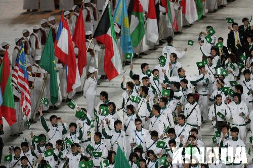 12月1日,第15屆亞運會開幕式在卡塔爾首都多哈哈里發(fā)體育場隆重舉行。這是中國澳門代表團入場。 新華社記者李岳攝