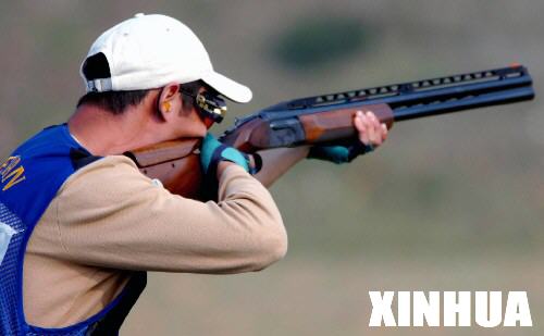 10月13日,河南隊選手呂志科在男子飛碟多向75靶比賽中。當日,十運會射擊比賽拉開戰幕。