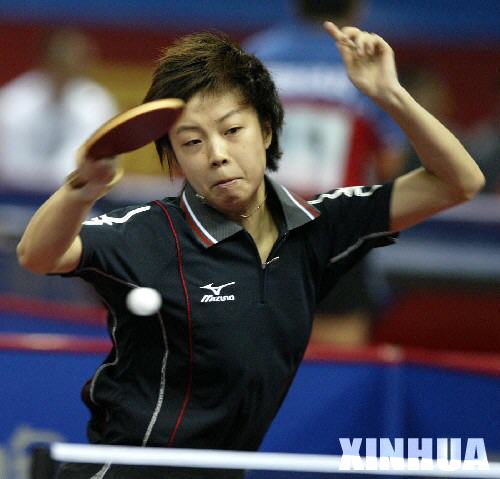 10月13日,上海隊選手王勵勤在比賽中發球。當日,在江蘇無錫進行的第十屆全運會乒乓球團體賽第一階段最后一輪的比賽中,王勵勤以3比0擊敗天津隊選手馬文革。最終,上海男隊以3比1擊敗天津隊。