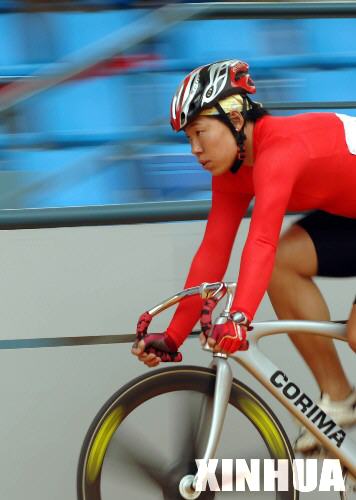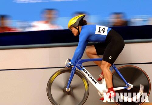 10月14日,吉林選手宮金杰在十運會自行車女子場地爭先賽200米計時賽資格賽中,以12秒207的成績順利進入下一輪。