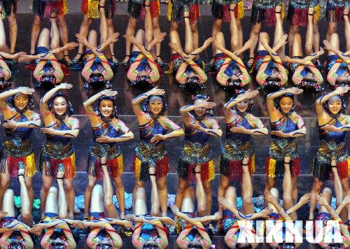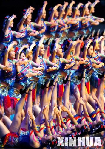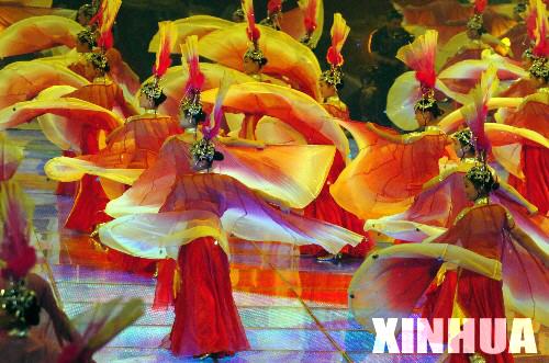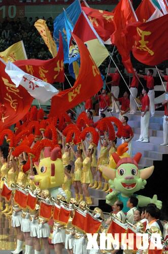 10月23日,演員們在閉幕式上進(jìn)行文體表演。當(dāng)日,第十屆全國運(yùn)動會在江蘇南京隆重閉幕。
