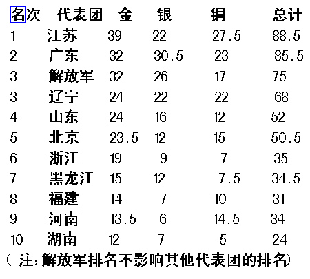 · 十運會總獎牌榜(截至10月18日0:00)