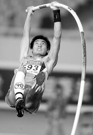 10月18日18時30分,南京奧體中心田徑場,男子撐桿跳高比賽開始了。 兩大高手將角逐這塊金牌:5米70的最新全國紀錄創造者——我省年僅20歲的小將劉飛亮,以及5米63的前全國紀錄保持者——解放軍選手張宏偉。我省另一名運動員楊雁盛也同時出現在了賽場上。 橫桿從4米50開始升起,但是劉飛亮和張宏偉一直沒有試跳。5米20了!此時場上剩下的選手已經不多了。張宏偉率先出場,一躍而過,劉飛亮也是一次過關。5米30,兩大高手,又都沒有跳。橫桿升到了5米40。楊雁盛和張宏偉都輕松跨越,而劉飛亮卻兩次試跳沒成功。在眾人期待的目光中,劉飛亮稍作休息,調整氣息,第三跳成功過桿。橫桿升到5米50了!張宏偉和劉飛亮兩人第一跳都失敗了。第二跳,張宏偉又失敗了,但劉飛亮成功了。背水一戰的張宏偉別無選擇,直接要了5米55。當張宏偉挑戰5米55失敗后,劉飛亮抬頭掃了一眼現場的大屏幕,這才發現:冠軍是他的了。 劉飛亮毫不遲疑地要了5米60,并且一越而過。之后他又要了5米71,他想創造新的全國紀錄。這一次,劉飛亮欠缺了一點運氣,三次試跳都不錯,但都只差了那么一點點。 (本報南京10月18日訊)