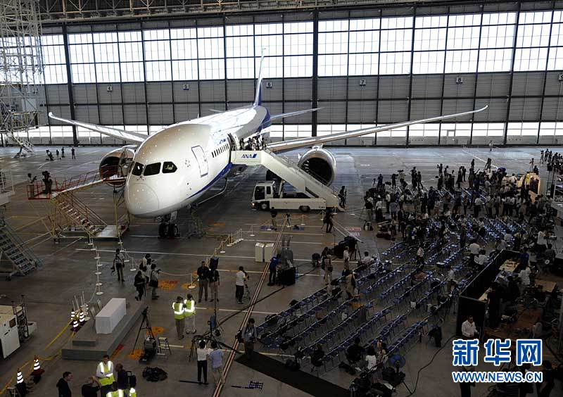 7月4日,在日本東京羽田機場,全日本航空公司(ANA)的一架“夢幻客機”波音787停在機庫中。這架世界上目前最先進的客機于7月3日清晨降落日本,完成了首次飛越太平洋的測試飛行。這架世界上目前最先進的客機于7月3日清晨降落日本,完成了首次飛越太平洋的測試飛行。