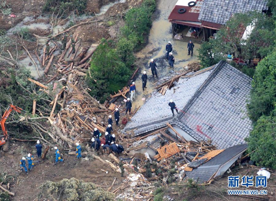 9月5日,在日本和歌山縣田邊市,救援人員在廢墟中搜救失蹤人員。今年第12號強(qiáng)臺風(fēng)“塔拉斯”在日本造成的死亡人數(shù)5日上升至27人,另有53人失蹤。 新華社/路透