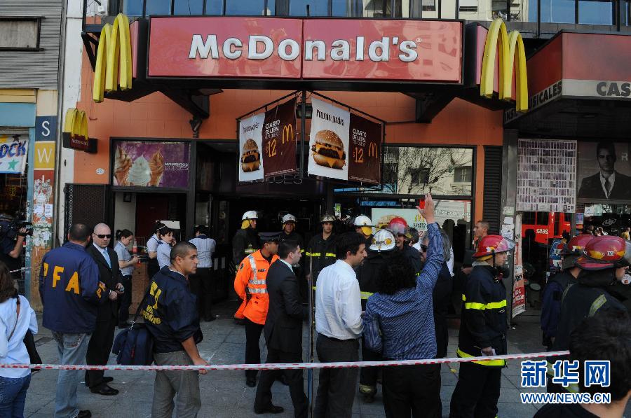 新華社照片,布宜諾斯艾利斯,2011年9月22日 阿根廷一家麥當勞餐廳屋頂坍塌造成14人受傷 9月21日,在阿根廷首都布宜諾斯艾利斯,警察在發生屋頂坍塌事故的麥當勞快餐店外設立了警戒線。事故造成至少14人受傷。新華社/美洲通訊社