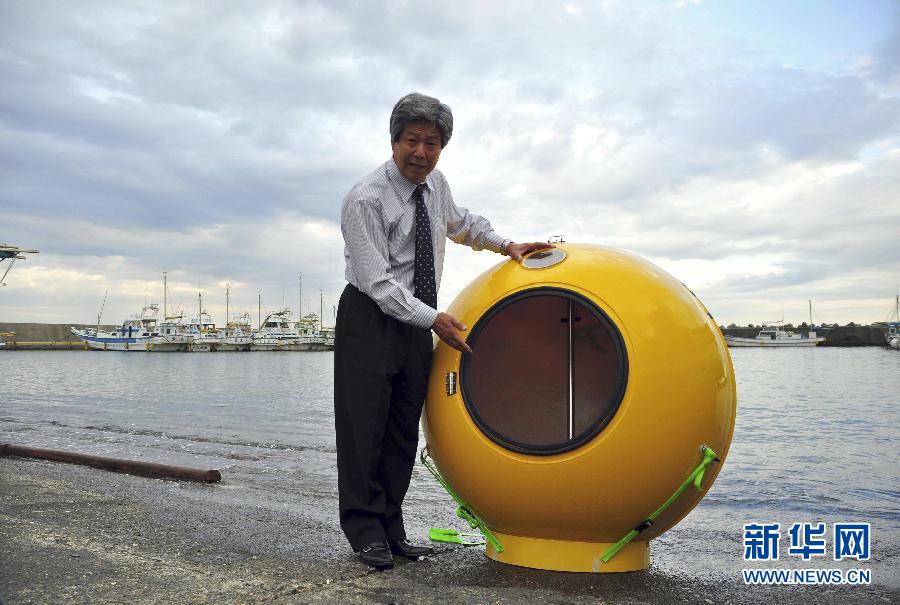 發明總是令人激動。2011年,預計時速達1000英里的獵犬超音速車設計成形,波音787夢想客機也首航成功,不再是夢想。我們驚嘆于這些“大件”發明的同時,也不妨將目光投向那些有趣的“小玩意兒”。它們或許并不復雜,并不嚴肅,有的甚至還沒有走向市場,但讓人過目難忘!科技以人為本,科技創新更應該給人帶來快樂。而且,誰能保證這些發明今后不會改變我們的生活呢?就像2010年1月27日,一個叫斯蒂夫·喬布斯的美國人在舊金山發布了像玩具一般的iPad,而現在,不到兩年的時間,全球無數人都開始享受用手指在屏幕上操作電腦的樂趣。2011年,我們送走了這位偉大的發明家,但是發明的故事還將繼續。 2011年10月3日,在日本平冢,田中和其發明的“諾亞”地震海嘯避難艙在一起。這種圓形密封艙由強化玻璃纖維制成,能夠在水上漂浮,可幫助使用者在地震和海嘯中逃生。發明者田中將其命名為“諾亞”,希望它能在下次地震和海嘯中幫助人們逃生。新華社/路透