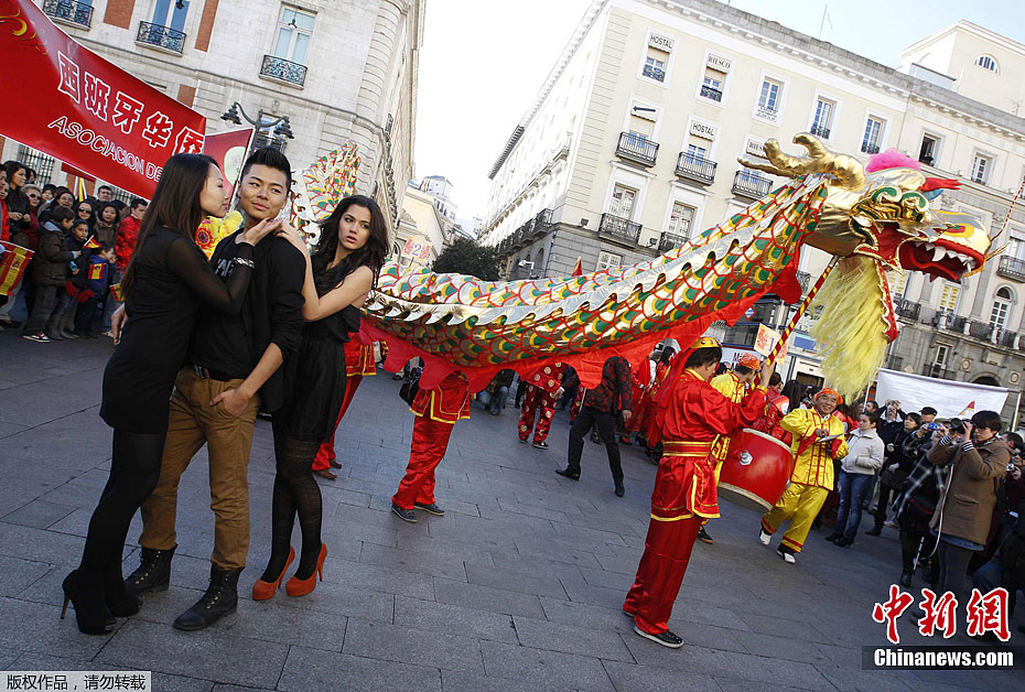 當?shù)貢r間1月21日,西班牙馬德里市中心舉行游行活動,隆重慶祝中國農(nóng)歷龍年即將到來。
