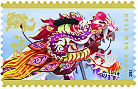美國(guó)2012壬辰龍年郵票:色彩華麗,無(wú)面值
