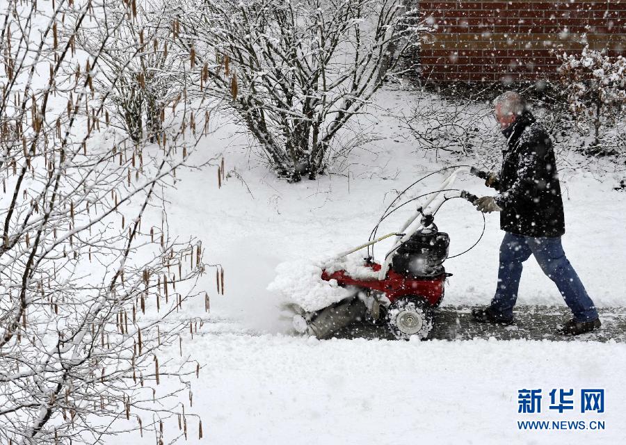 從當日清晨開始,柏林突降大雪,降雪對公路交通造成一定影響。 新華社記者馬寧攝