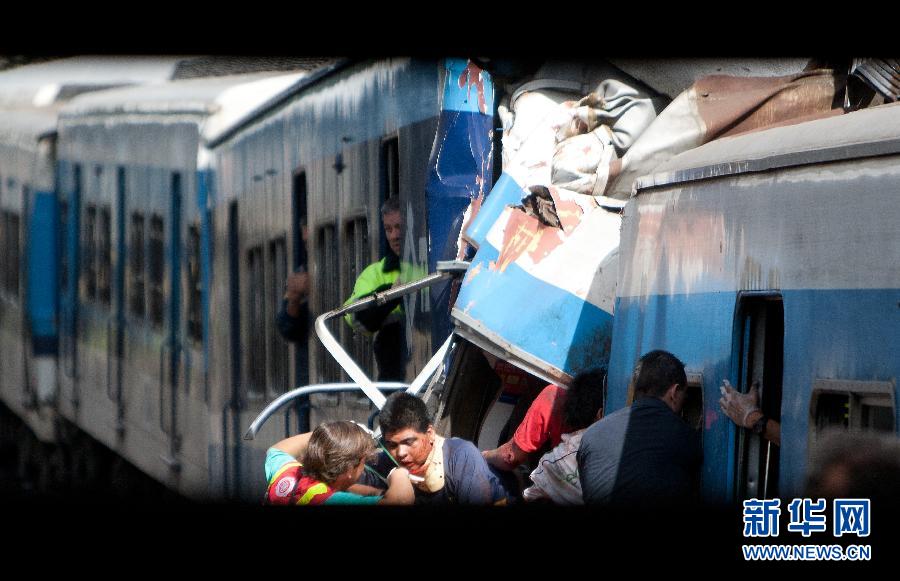 2月22日,在阿根廷首都布宜諾斯艾利斯,阿根廷救援人員救援城鐵列車事故中受傷者。當日,阿根廷首都布宜諾斯艾利斯發生一起城鐵列車出軌事故。 新華社發(馬丁·薩巴拉攝)