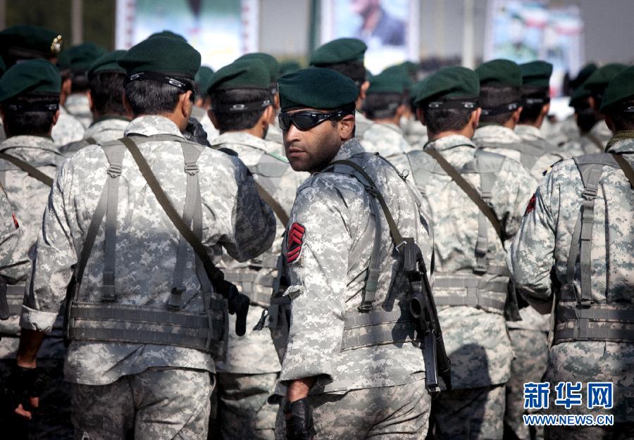 4月17日,在伊朗德黑蘭,伊朗士兵參加建軍節閱兵。伊朗當日慶祝建軍節,首都德黑蘭及其他多個城市舉行閱兵,展示多款伊朗國產軍事裝備。 新華社發(艾哈邁德·哈拉比薩斯攝)