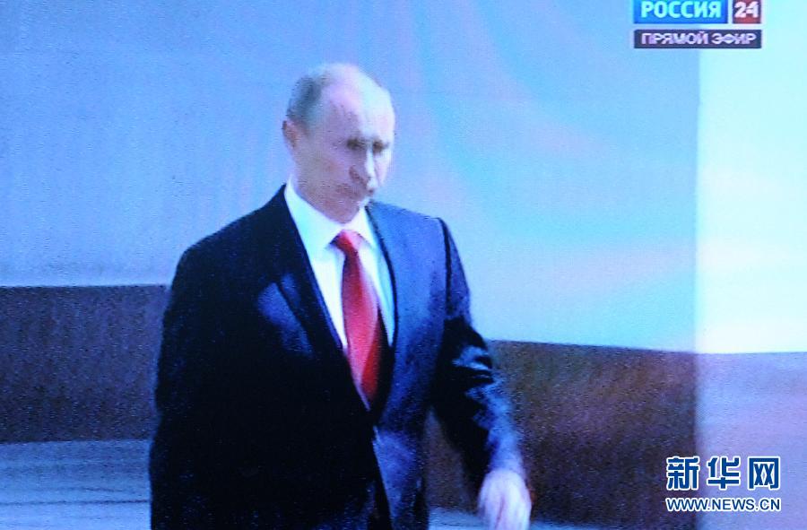 這張5月7日的電視截圖顯示普京走出俄羅斯政府大樓。 當日,俄羅斯在首都莫斯科舉行新一屆總統就職典禮,普京將宣誓就任俄羅斯總統。新華社記者李勇攝