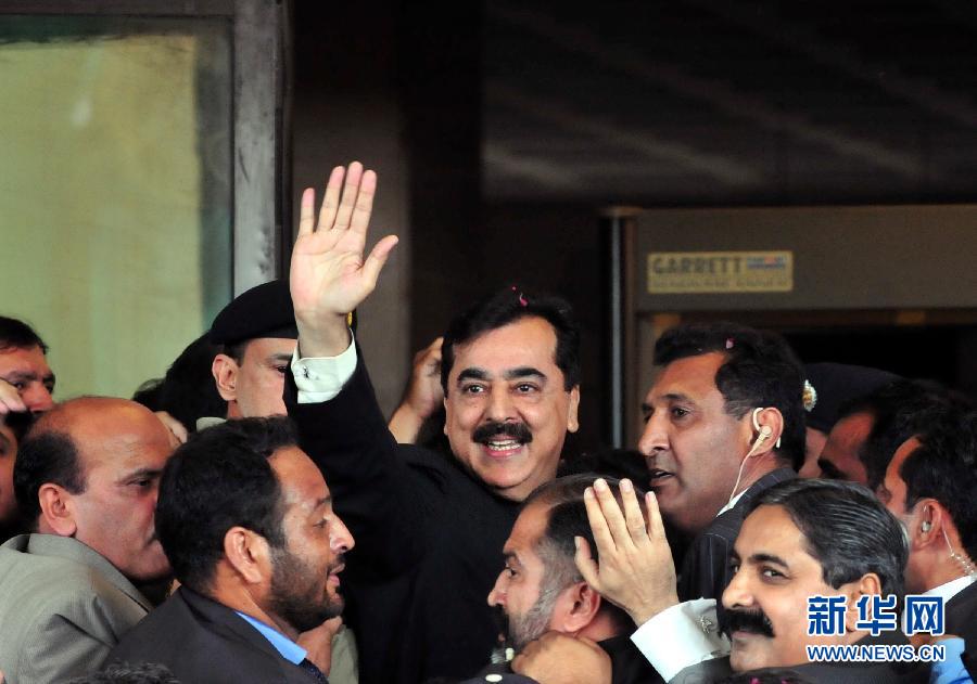 據巴基斯坦媒體6月19日報道,由于巴基斯坦總理吉拉尼未就最高法院對其藐視法庭罪的裁定提出上訴,巴基斯坦最高法院19日宣布取消吉拉尼擔任總理的資格。這是4月26日,在巴基斯坦伊斯蘭堡,巴總理吉拉尼(中)到達最高法院。 新華社發(艾哈邁德·卡邁勒攝)
