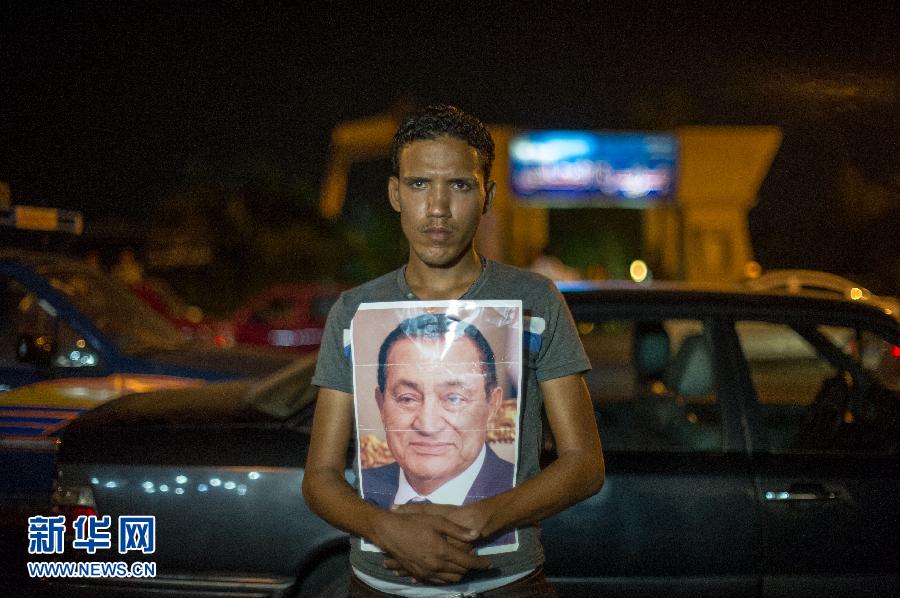 6月20日,一名男子手持埃及前總統穆巴拉克的照片站在開羅的馬阿迪軍事醫院外。開羅一家軍事醫院的醫生19日說,前總統穆巴拉克目前陷入昏迷,依靠呼吸機呼吸,但并沒有“臨床死亡”。此前,官方中東社報道稱,穆巴拉克從監獄轉到這家軍事醫院時已經“臨床死亡”。新華社記者李木子攝
