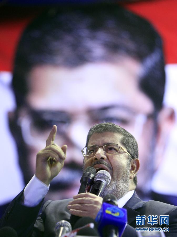 6月24日,埃及最高總統選舉委員會宣布,穆斯林兄弟會下屬自由與正義黨主席穆爾西贏得穆巴拉克下臺后的首次埃及民主總統大選。圖為2012年4月30日在開羅拍攝的穆爾西的資料照片。 新華社/美聯