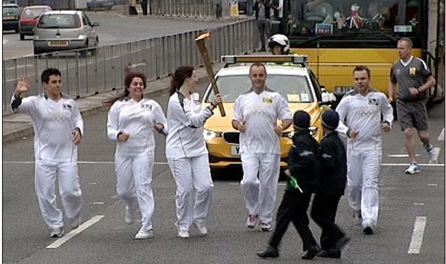 英國考文垂市,兩名惡作劇的少年搶奪奧運會火炬(網頁截圖)