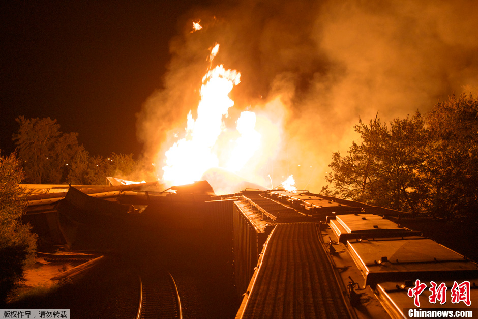 當地時間2012年7月11日凌晨,美國俄亥俄州哥倫布市附近一列貨運列車發生脫軌事故,車上載有的乙醇爆炸后引發大火。附近的百余名居民被疏散。
