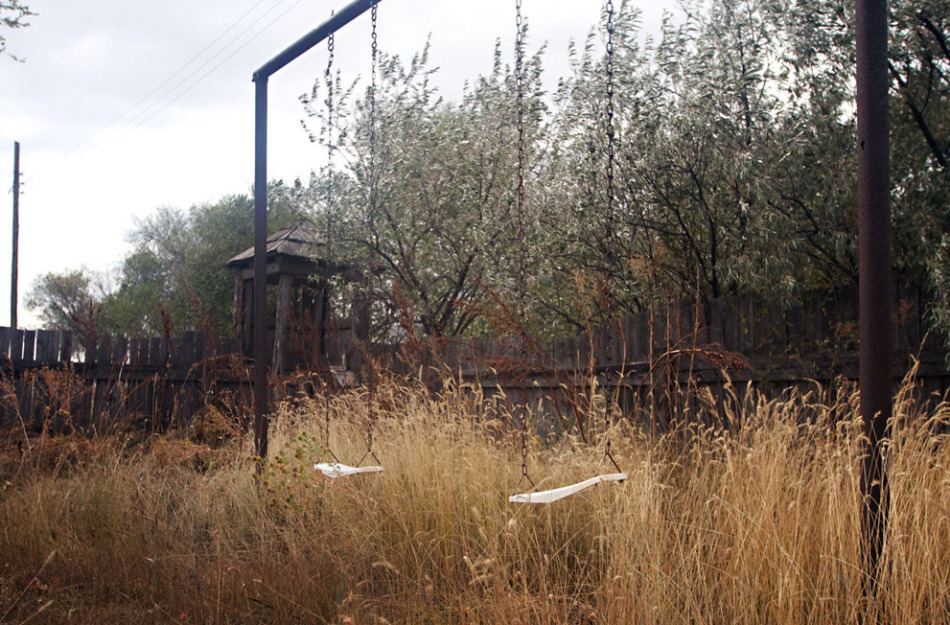 美國南達(dá)科他州錫尼克的一所廢棄學(xué)校,操場內(nèi)野草叢生。