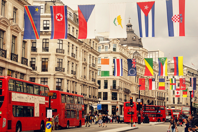 攝政街上的這些國旗代表著即將來倫敦參加比賽的國家,除此之外,與攝政街相交的Jermyn Street和 Conduit Street兩條街道也參與其中。所以在奧運(yùn)期間,倫敦市中心一共能看到206面不同國家的國旗。