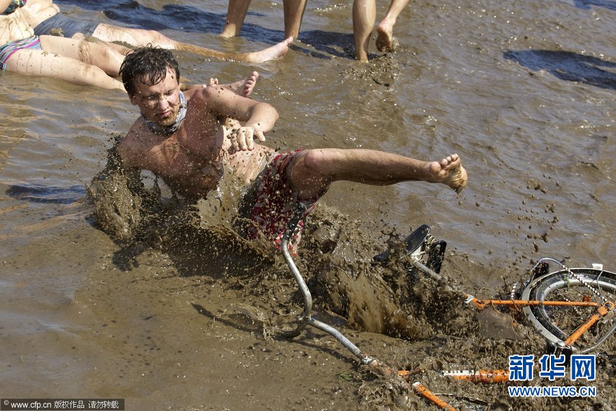 當地時間2012年8月2日,波蘭科斯琴,當地民眾享受傳統泥漿浴慶祝第18屆伍德斯托克音樂節。音樂節從8月2日持續至4日,據稱是歐洲最大的戶外慶祝活動,民眾可以免費參與其中。