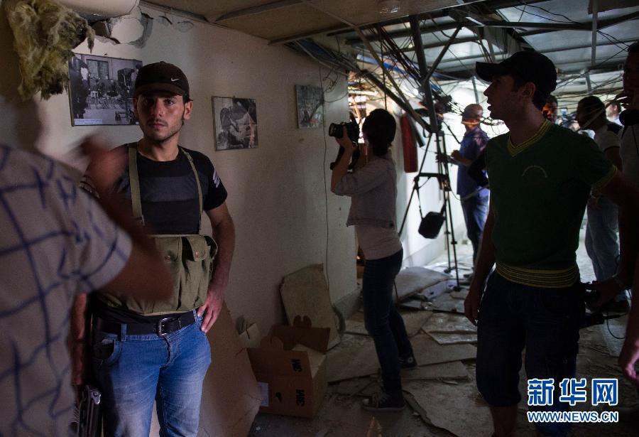 8月6日,在敘利亞首都大馬士革,警衛在敘利亞國家電視臺大樓發生爆炸的樓層執勤。當日,位于敘利亞首都大馬士革的敘國家電視臺大樓遭到爆炸襲擊,爆炸發生在大樓三層,目前已造成3名電視臺工作人員受傷。 新華社記者覃海石攝