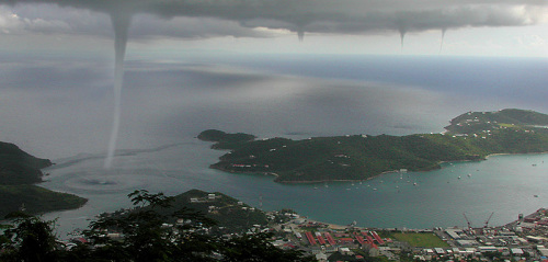 美國是龍卷風(fēng)多發(fā)的國家,經(jīng)常出現(xiàn)水上龍卷風(fēng)。但多條水上龍卷風(fēng)同時出現(xiàn),形成“多龍吸水”的景象,并不多見。