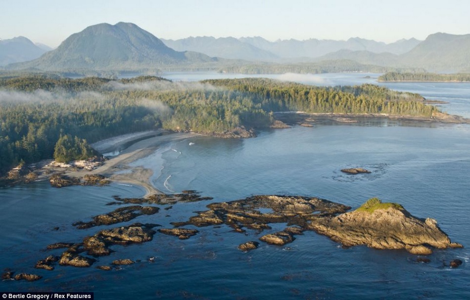 全景:籠罩著薄薄霧氣的溫哥華島西海岸。